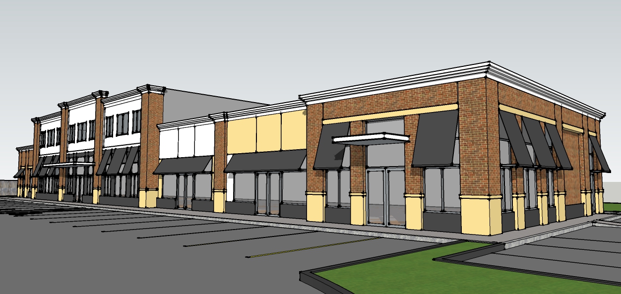 aijou group is designing a mixed use development in Peabody, MA that has two buildings, 6 commercial units and two residential units on a high traffic corner lot.